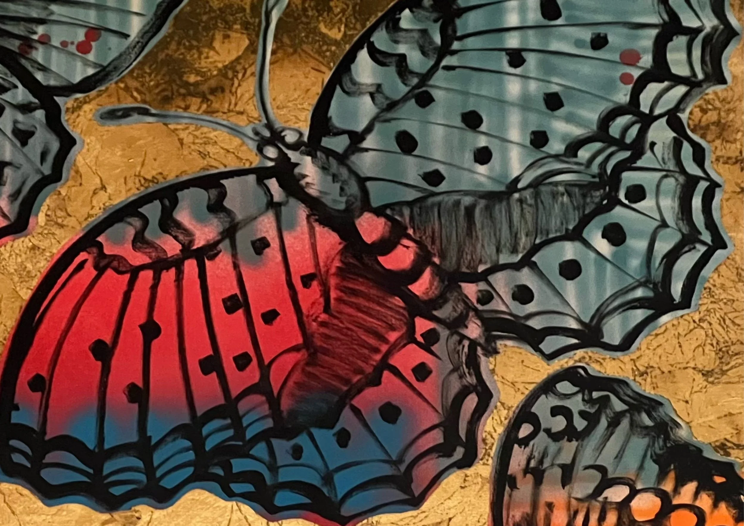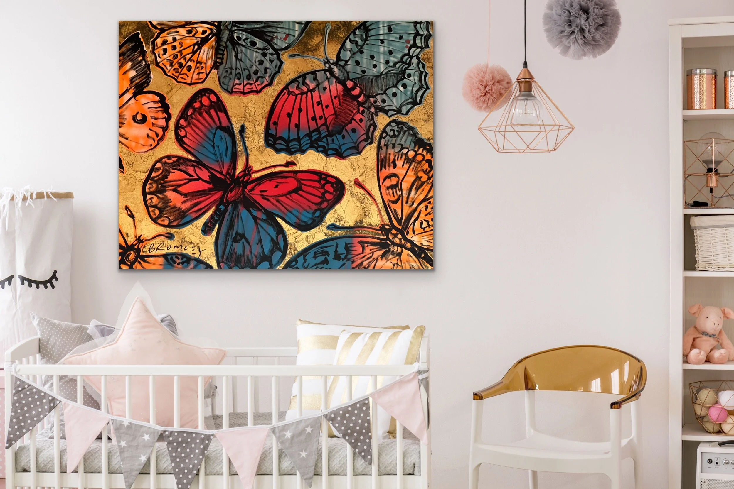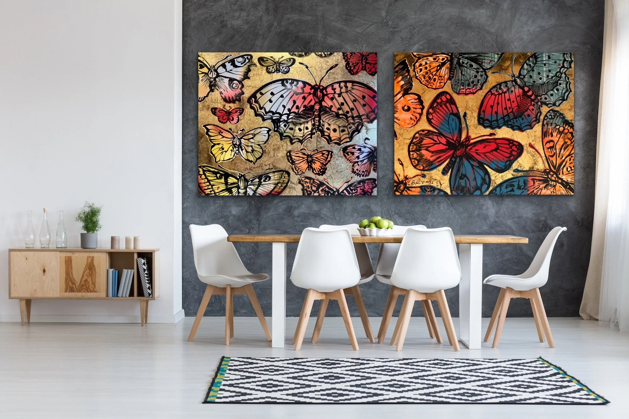 Bromley artworks work around several different sizings placing these ‘gold gilded rainbow butterflies’ in the largest range of sizes offered. This 1.5x1.2 represents some of Davids most striking works. Certificate of Authenticity’ available with every purchase, never been used, Brand New.